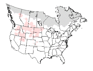 This image shows the distribution of the Short-eared Owl in the U.S. and Canada. The pink and red shaded areas are where this owl has been found. The darker the shade of pink, the greater the number of owls found in that area. |